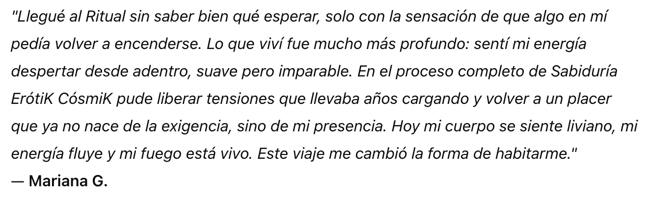 Sabiduría ErótiK CósmiK es una experiencia creada por Melina Hollman para que regreses a tu fuego vital, expandas tu energía y recuerdes la vibración más auténtica de tu placer consciente.